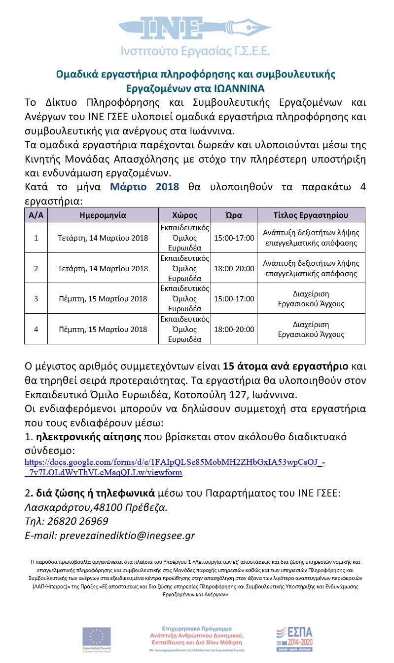 Εκπαιδευτικά προγράμματα από το ινστιτούτο εργασίας της γσεε.